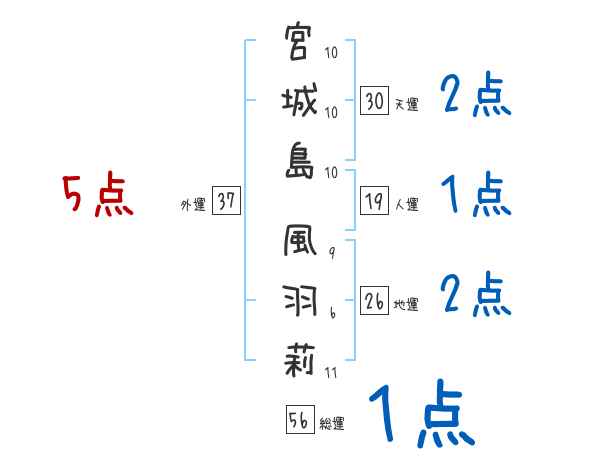 宮城島風羽莉さんの画数の鑑定結果
