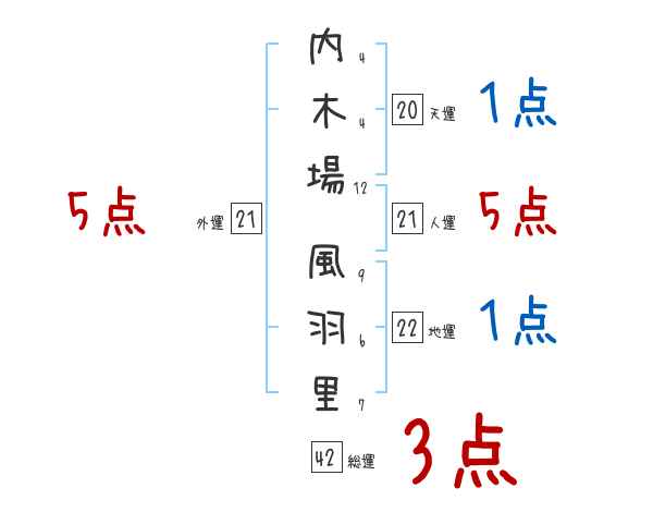 外運![]() | 内木場風羽里さんの外運は21画の5つ星!統率力がある。独立し成功する。名誉を手に入れる。 生活面を象徴する運勢です。外部から受ける影響力を表し、結婚運、家庭運や職場、環境への順応性を表します。 |