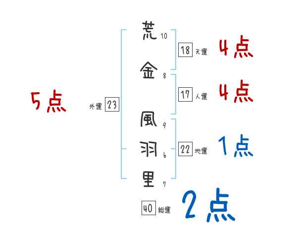 地運![]() | 荒金風羽里さんの地運は22画の1つ星!努力することが苦手ないっぽう手先が器用。芸術性にも優れる。 個性を表す基礎的な運勢です。性格形成や対人関係、行動力など家庭環境に影響されます。主に誕生してから20歳くらいまでの若年期の運勢を表します。 |