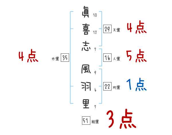眞喜志風羽里さんの画数の鑑定結果