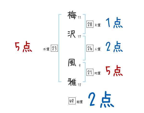 梅沢風雅さんの画数の鑑定結果