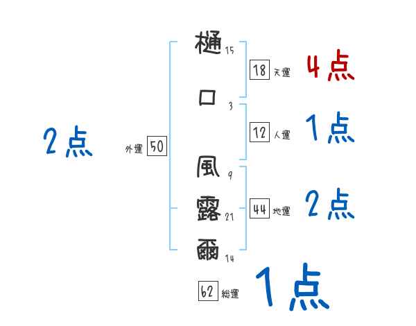 樋口風露爾さんの画数の鑑定結果
