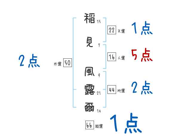 稲見風露爾さんの画数の鑑定結果