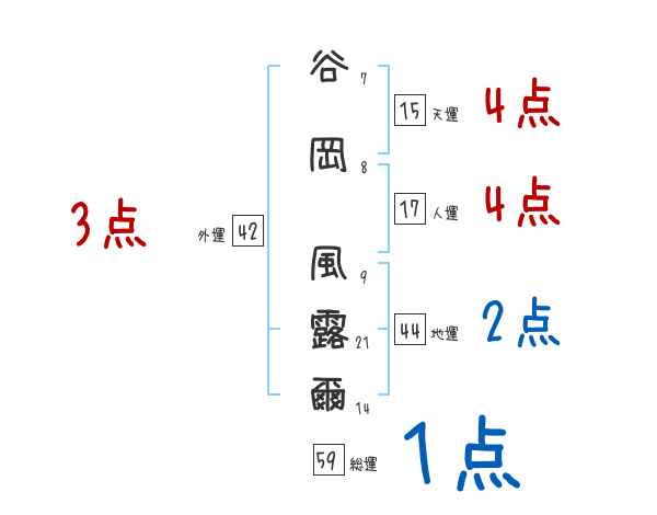 谷岡風露爾さんの画数の鑑定結果