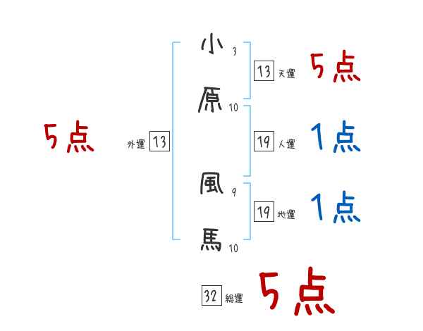 小原風馬さんの画数の鑑定結果