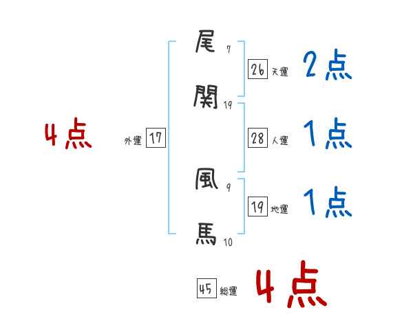 天運![]() | 尾関風馬さんの天運は26画の2つ星!波瀾万丈かも。信頼できる人を大事にしましょう。 家系が持つ宿命的な運勢を表します。祖先から受け継いだ苗字ですので自分の力が及びません。家柄を象徴します。 |