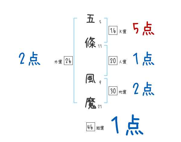 五條風魔さんの画数の鑑定結果
