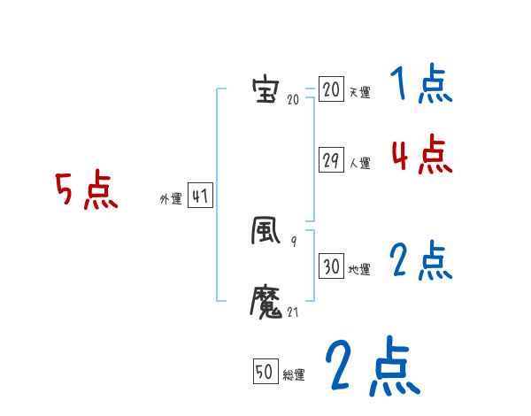 宝風魔さんの画数の鑑定結果