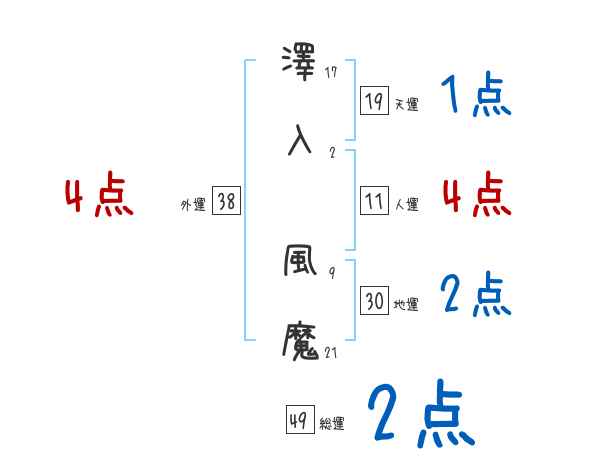 澤入風魔さんの画数の鑑定結果