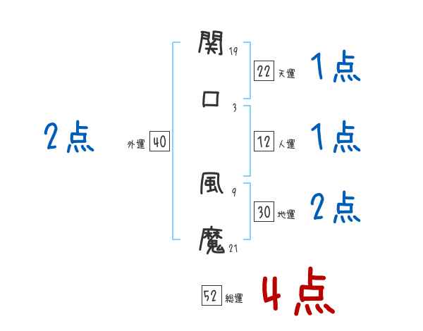 関口風魔さんの画数の鑑定結果