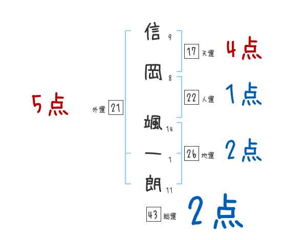 信岡颯一朗さんの画数の鑑定結果