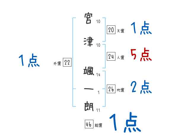 宮津颯一朗さんの画数の鑑定結果