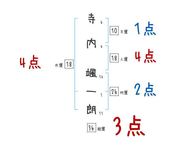 寺内颯一朗さんの画数の鑑定結果