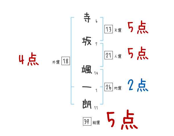 寺坂颯一朗さんの画数の鑑定結果