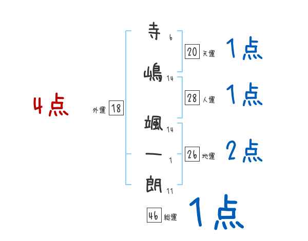 寺嶋颯一朗さんの画数の鑑定結果