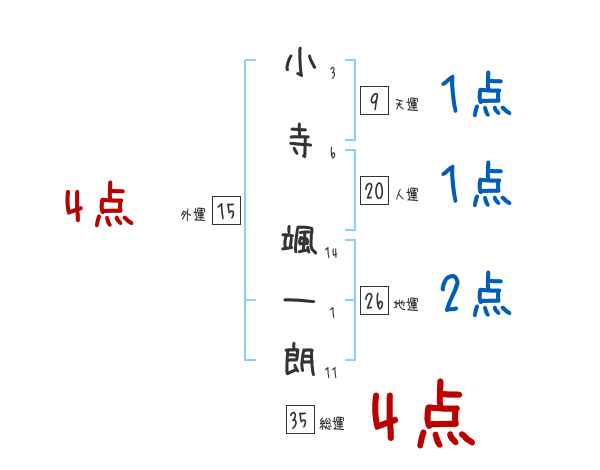 小寺颯一朗さんの画数の鑑定結果