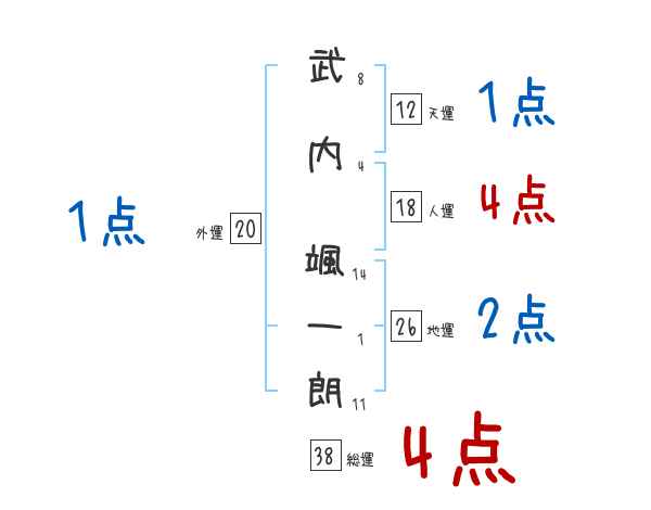 総運![]() | 武内颯一朗さんの総運は38画の4つ星!温厚な性格で技術的な才能を発揮する。職人的な仕事に向いている。 あなたの人生を表す1番重要な運勢です。生涯を通じて影響する総合運となり、主に50歳以降の晩年期に影響を及ぼします。 |
