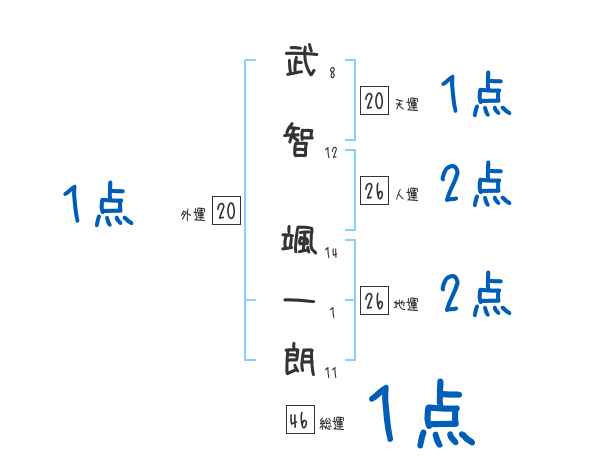 地運![]() | 武智颯一朗さんの地運は26画の2つ星!波瀾万丈かも。信頼できる人を大事にしましょう。 個性を表す基礎的な運勢です。性格形成や対人関係、行動力など家庭環境に影響されます。主に誕生してから20歳くらいまでの若年期の運勢を表します。 |