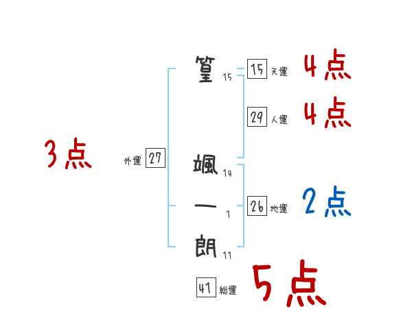 篁颯一朗さんの画数の鑑定結果
