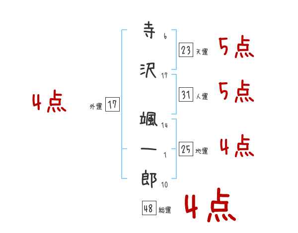 寺沢颯一郎さんの画数の鑑定結果