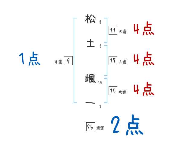 松土颯一さんの画数の鑑定結果