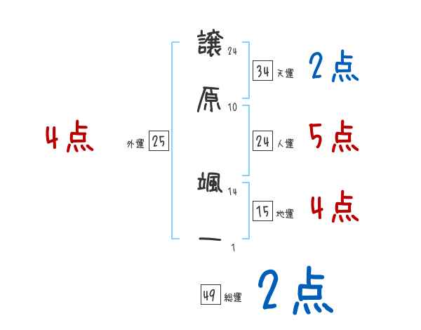 譲原颯一さんの画数の鑑定結果