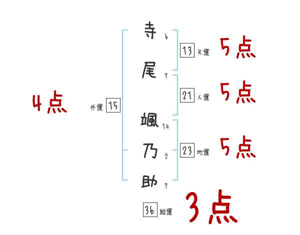 寺尾颯乃助さんの画数の鑑定結果