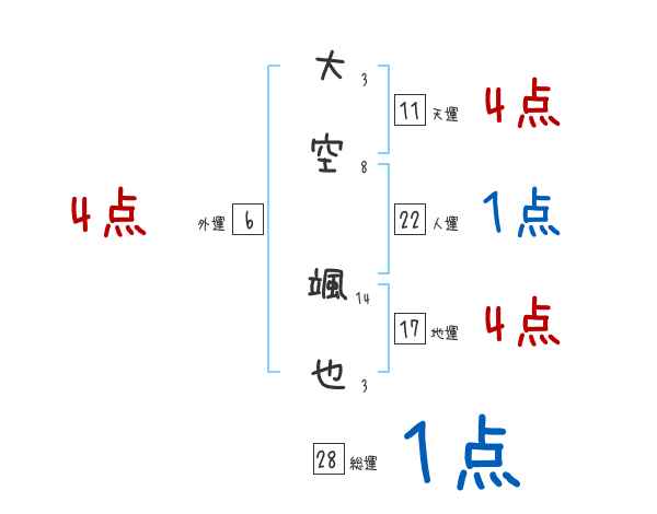 大空颯也さんの画数の鑑定結果