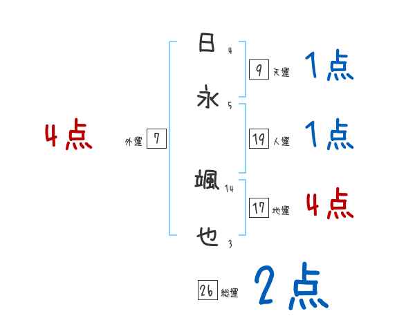 日永颯也さんの画数の鑑定結果