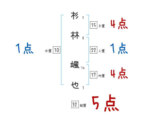 杉林颯也さんの画数の鑑定結果