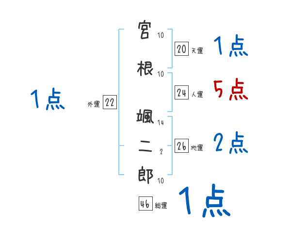 宮根颯二郎さんの画数の鑑定結果