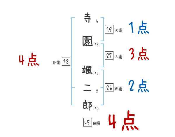 寺園颯二郎さんの画数の鑑定結果