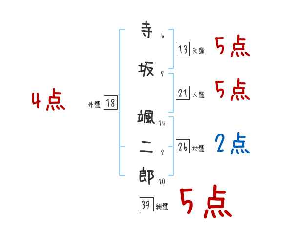 寺坂颯二郎さんの画数の鑑定結果