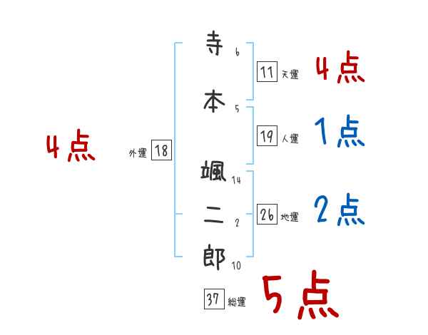 寺本颯二郎さんの画数の鑑定結果