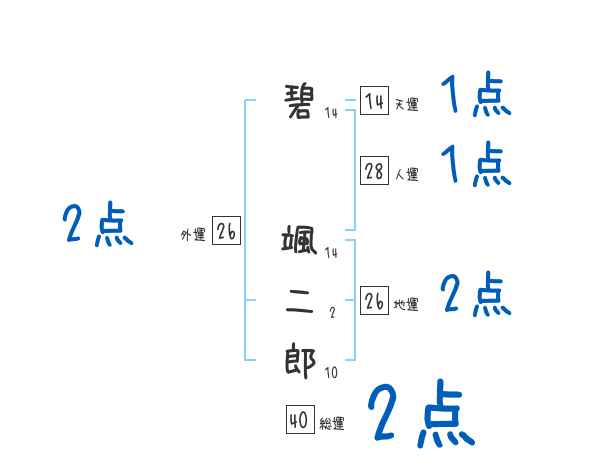 碧颯二郎さんの画数の鑑定結果