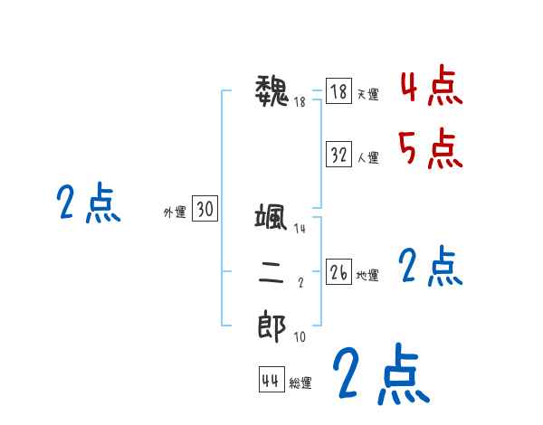 魏颯二郎さんの画数の鑑定結果