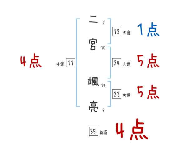 二宮颯亮さんの画数の鑑定結果