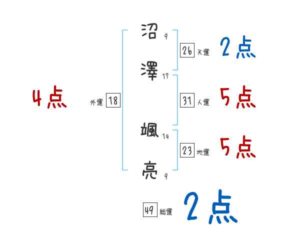 沼澤颯亮さんの画数の鑑定結果