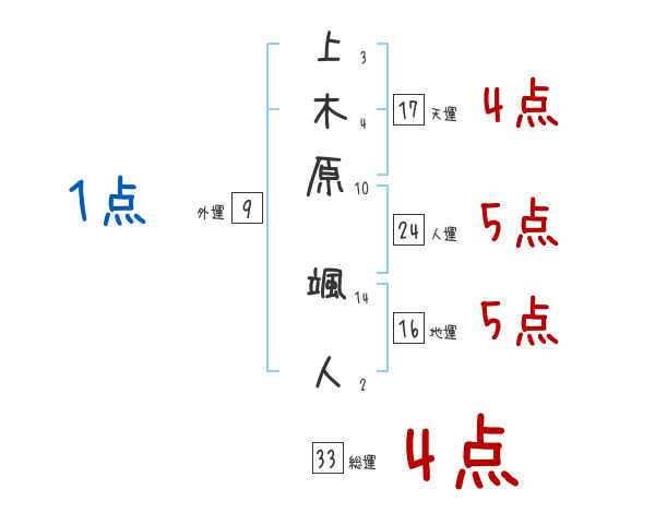 天運![]() | 上木原颯人さんの天運は17画の4つ星!積極的な行動力。地位を気づき財産を手に入れる。純粋な心と直感力。 家系が持つ宿命的な運勢を表します。祖先から受け継いだ苗字ですので自分の力が及びません。家柄を象徴します。 |