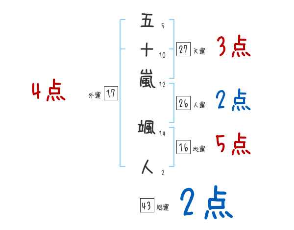 五十嵐颯人さんの画数の鑑定結果