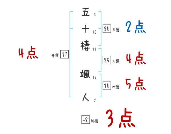五十棲颯人さんの画数の鑑定結果