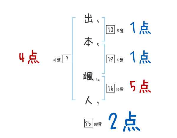 出本颯人さんの画数の鑑定結果