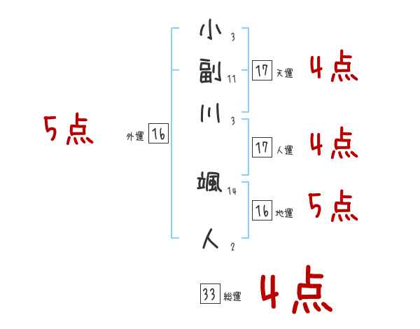 小副川颯人さんの画数の鑑定結果