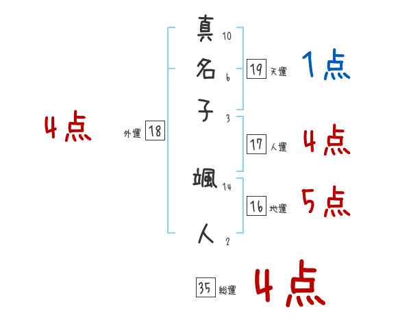 真名子颯人さんの画数の鑑定結果