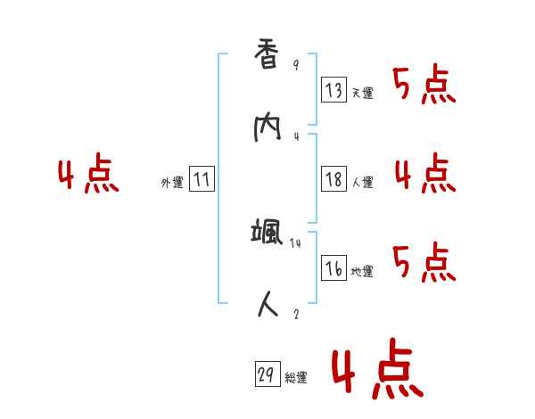 香内颯人さんの画数の鑑定結果