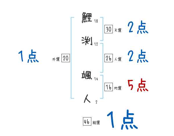 鯉渕颯人さんの画数の鑑定結果