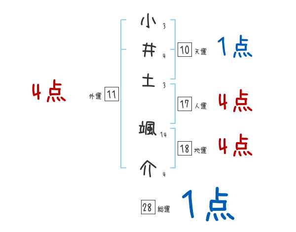小井土颯介さんの画数の鑑定結果