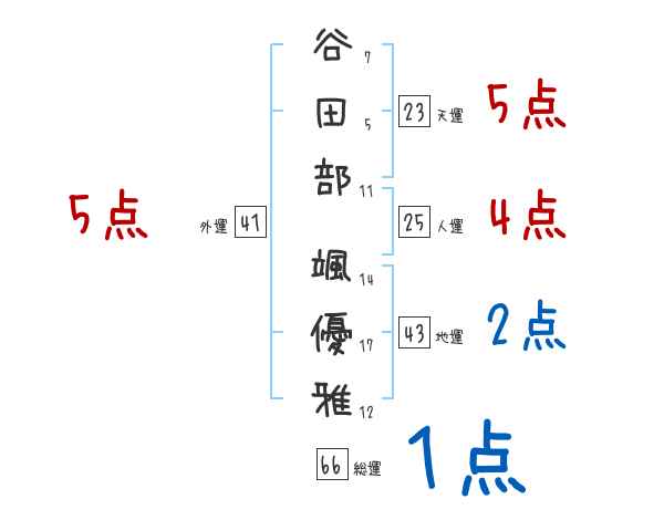 谷田部颯優雅さんの画数の鑑定結果
