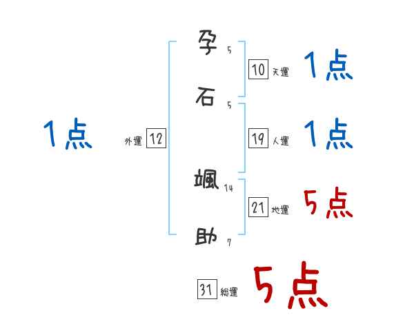 孕石颯助さんの画数の鑑定結果