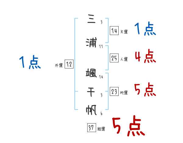 天運![]() | 三浦颯千帆さんの天運は14画の1つ星!人に対して優しいがストレスを溜め込みがち。人間関係のトラブルを避けるよう気をつけましょう。 家系が持つ宿命的な運勢を表します。祖先から受け継いだ苗字ですので自分の力が及びません。家柄を象徴します。 |